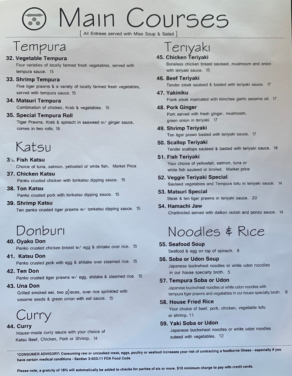 Through the eyes of patrons, Sushi Matsuri consistently receives rave reviews for its fantastic sushi—“outstanding” and “some of the freshest fish” are just a few descriptors from satisfied customers. The sashimi is noted for its generous portion sizes, with highlights on the tunas and salmon that melt in your mouth. Many diners mention the quality of the rolls, particularly appreciating their presentation and taste. Approachable, friendly service rounds out the experience, making regulars and newcomers feel like part of the Sushi Matsuri family.